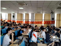 2019年9月12日下午,在快猫 九龙湖校区J4-402教室里,100多名师生齐聚一堂,见证了这一个多月来,2017级计算机&快猫 学生在东方瑞通派出的项目经理指导下完成的项目实训成果发布会。