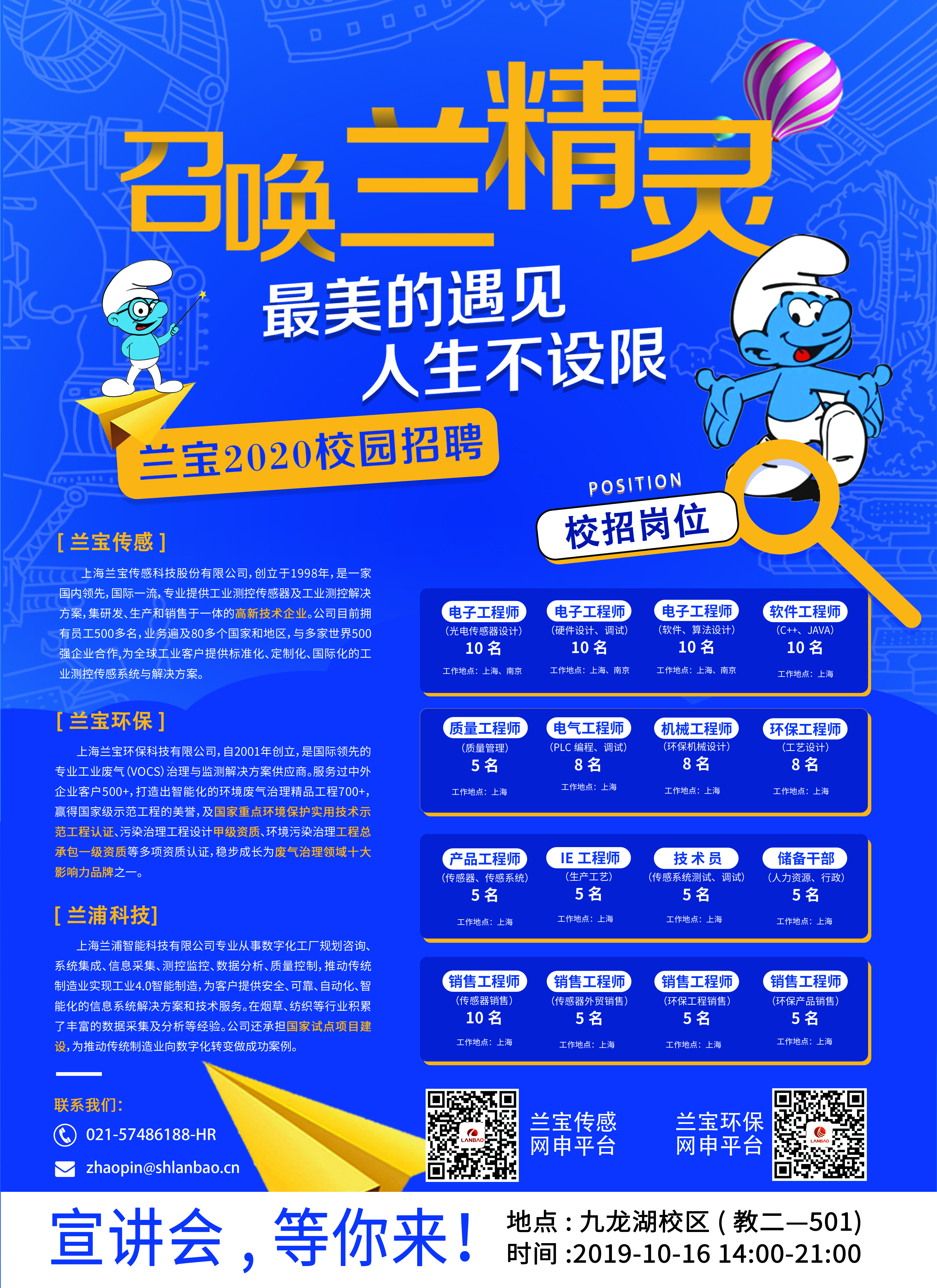 上海兰宝传感科技股份有限公司是上海市高新技术企业,可以帮应届生落户(达到72分者),提供免费的员工宿舍,中餐免费,做五休二,加班少。