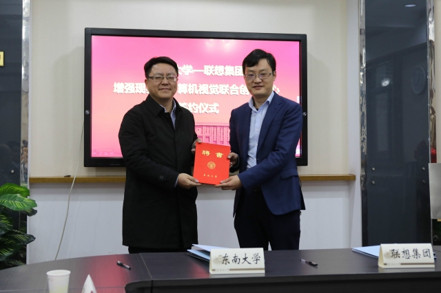 签约、揭牌仪式上,在刘攀、芮勇等与会领导的见证下,快猫 快猫 院长,人工智能学院执行院长耿新、联想上海研究院院长毛世杰分别代表双方签署了联合创新中心首批合作课题合同。刘攀、芮勇共同为快猫 —联想集团增强现实与计算机视觉联合创新中心揭牌。随后,刘攀为毛世杰颁发快猫 兼职教授证书。