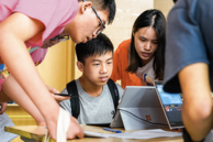 在各班班主任的引导下,近两百名高中生有序进场。在拿到活动简介和积分卡后,同学们便迫不及待地去挑战自己感兴趣的游戏项目,在每个项目前,都有工作人员进行耐心地讲解和示范。舞台上,主持人一遍又一遍地播送着各种通知,跳动的微信墙上也实时展示了同学现场游戏的照片。同学们或是兴高采烈地享受着团队游戏,或是全神贯注地投入到智力游戏中,场上不断传来同学们欢快的笑语声和紧张的加油声。