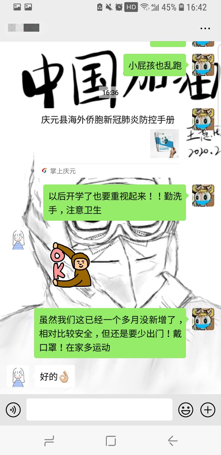 我所在的城市虽已经一个多月无新增病例,且有许多市民开始私下聚集(令人头大),但近期邻县丽水青田有许多侨胞回国,境外输入病例增加,随着小城开始复工,身边不免有许多亲戚、朋友需要出入县城,希望我的一些转发疫情防控知识、健康生活方式的宣传普及与劝诫能让身边人提高防控意识