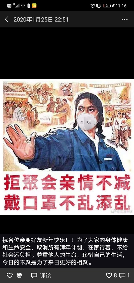 疫情爆发初期,是广大人民尤其是家中长辈最不重视期间,我们90后承担起了保护国家保护家人的责任。在朋友圈以及家庭群宣传疫情的最新消息,以及相关防疫措施,并且在面对层出不穷的谣言之时,不信谣不传谣,并且我们有义务制止谣言的传播。