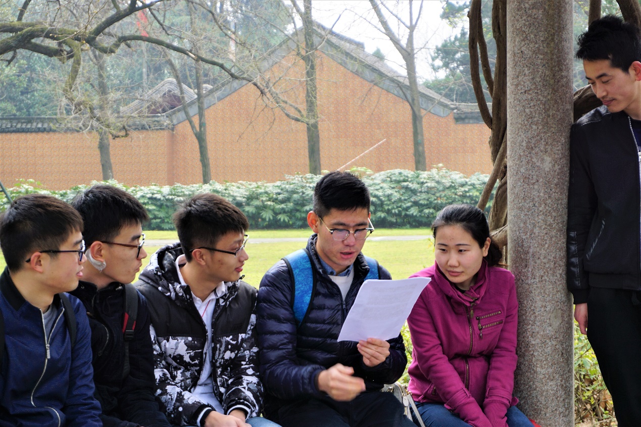 第四个任务点名为“激战腊子口”,位于南京校友林后面的小路上。此关卡需要小组两位成员完成“两人三足”的百米绑腿跑,该任务不仅考验着两位队员之间的默契,也为让大家进一步体会长征中肩并肩的战友情。