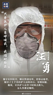 同时,我们也关注在疫情中作出贡献的平凡人物,他们值得我们学习,比如“中大医院派出的邱海波书记和黄英姿院长”等医护工作者,他们是逆行者,“国有战,召必回”,遏制新型肺炎疫情,有责任感的人不仅仅是受保护者,更是疫情防范链条上的积极践行者。