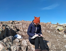 图:2017级计算机专业学生-库乃•阿扎提在山顶学习