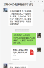 2.及时建立微信答疑工作群,提供各智慧教学平台的使用指南、培训信息,邀请邀请中国大学MOOC和雨课堂技术人员为老师们答疑解惑,协助老师完成各类注册,尽快熟悉各类平台使用。