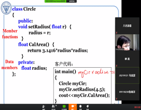 图:系统界面展示-左侧为Web形式的视频会议系统界面,右侧为共享给学生的VS开发环境
