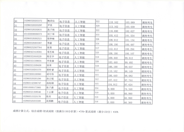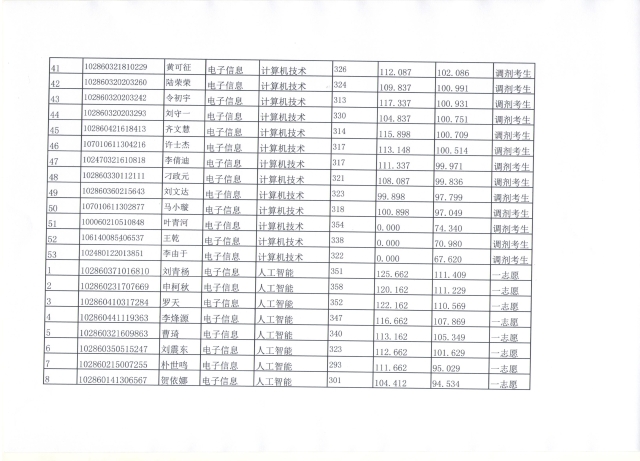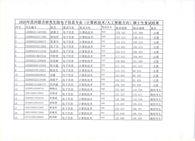 2020年苏州联合研究生院电子信息专业(计算机技术/人工智能方向)硕士生复试结果
