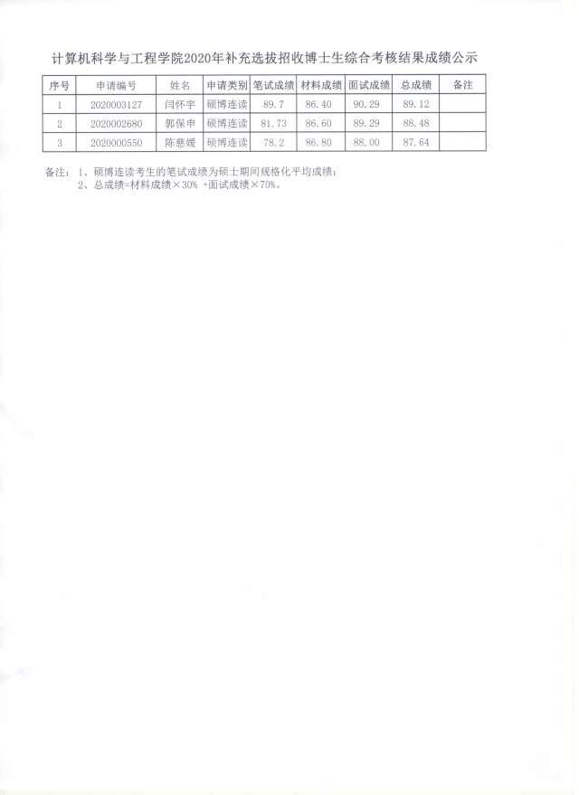 快猫 2020年补充选拔招收博士生综合考核结果成绩公示