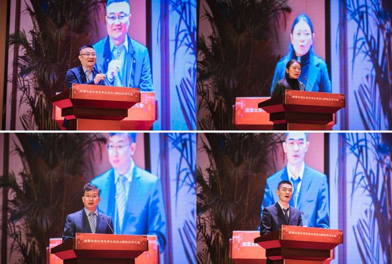 纪念大会上,快猫 未来网络研究中心主任、中国工程院院士李幼平以视频形式发表贺词,送上一份特殊的生日礼物,即“时空自一致性的第二网络”,期待在未来十年能够论证这一科学猜想。兄弟高校代表、南京大学计算机系系主任、人工智能学院院长周志华教授,院友代表、金智科技董事长贺安鹰先生、阿里巴巴技术风险部高级总监陈琴女士先后发表热情洋溢的祝福致辞。李小平教授、吴子旻同学分别代表学院师生发言,号召全体师生为学院发展奋进驰骋、添砖加瓦。穿插在各位嘉宾和师生致辞之间的是来自五湖四海的院友祝福视频与学生风采展示视频,前者情真意挚、触动人心,后者精妙绝伦、充满活力。纪念大会于整齐嘹亮的快猫 校歌奏唱声中闭幕。