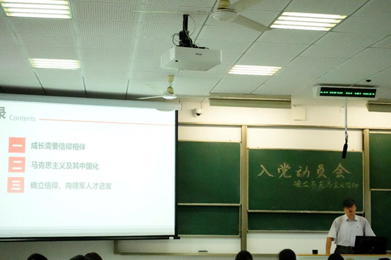 最后,裴锋老师强调“确立信仰,向领军人才进发”。他告诉同学们“广大青年生逢其时,也重任在肩。” 面对入党,青年们对党的认识要全面,动机要正确。要认识到党纪约束先于国法。立于时代的潮头,广大青年既是追梦者,也是造梦人。为了不让历史中苏俄的悲剧重演,年轻人要响应国家与时代的号召,以国家为先,奉献自己的力量建设国家,成为可靠接班人。这是年轻人应该确立的信仰,更是年轻人应该脚踏实地行动的方向。