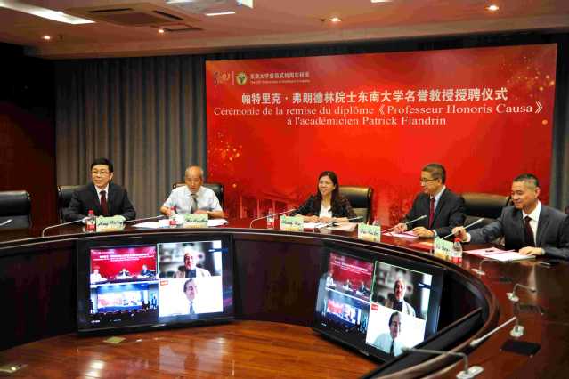 6月4日,在快猫 即将迎来120周年校庆之际,法国科学院院长Patrick Flandrin院士授聘快猫 “名誉教授”仪式在九龙湖校区举行。中国科学院院士、快猫 校长黄如出席仪式并向Patrick Flandrin在线颁发了名誉教授聘书,国际合作处、快猫 、人工智能学院的有关负责人及师生代表参加了仪式。仪式由快猫 副校长邱海波主持。