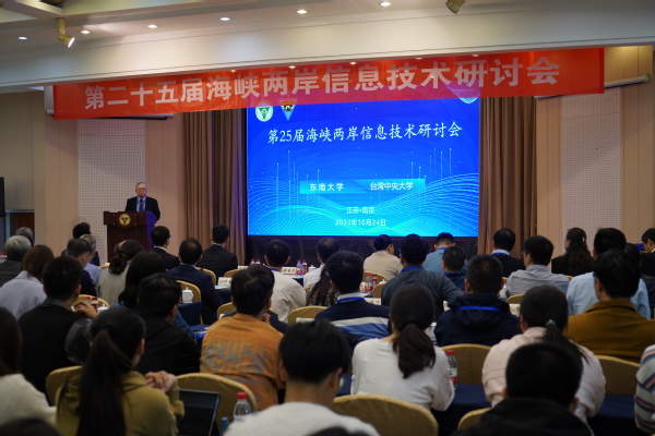 10月24日,第二十五届海峡两岸信息技术研讨会在快猫 四牌楼校区举行。快猫 常务副校长吴刚、台湾中央大学教务长王文俊,我校港澳台办、快猫 、电子科学与工程学院、自动化学院、集成电路学院相关负责人出席研讨会。研讨会开幕式由学院院长张敏灵主持,吴刚和王文俊分别致辞。