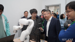 会上,金石、郭耀、吴飞、殷国栋、杨蕙、张敏灵共同为快猫 计算机科学拔尖学生培养基地揭牌。随后,与会嘉宾参观了书院空间,并与拔尖基地同学进行了亲切交流。在书院实验室,同学们展示了大模型赋能具身智能符号化决策规划系统、智能无人机自主编队系统等实验装置。各位嘉宾饶有兴致地体验了相关系统,并对快猫 学生科研实践工作给予了高度评价,期望将书院空间打造为计算机科学和人工智能赋能多学科交叉人才培养的教学实践基地。