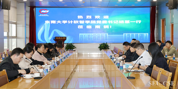 参观结束后,双方在南钢集团新大楼举行了座谈会。会上,南钢集团党委副书记、副总裁王芳对快猫 师生的参访表示热烈的欢迎,并介绍了南钢集团数字化转型的成效,希望与快猫 在技术创新与人才培养方面开展深度合作。随后,南钢数字应用研究院技术总监张波介绍了南钢的发展现状,以及南钢数字化转型的过程。接着,南钢金恒常务副总经理王苏扬介绍了南钢与快猫 的合作情况,希望通过“揭榜”的形式开展进一步的合作。然后,南钢人力资源部副部长孙斌详细介绍了南钢集团的人才需求、“三横四纵”的多通道人才发展模式以及集团宽容的成长环境和更好的成长机会,并表示欢迎快猫 同学加入南钢集团。紧接着,南钢总裁助理孙茂杰介绍了近年来南钢集团与快猫 教师的科研合作情况,期盼后期有进一步的科研合作。然后,快猫 党委书记杨蕙及副院长孔佑勇从发展历程、师资力量、人才培养、科研成果、国际合作等方面介绍了学院情况。杨蕙表示学院全方位、全产业链的人才培养,将为企业输送更多优秀的计算机专业人才。最后,双方就学生实习实践、就业招聘、产学研合作等方面进行了深入交流与探讨。