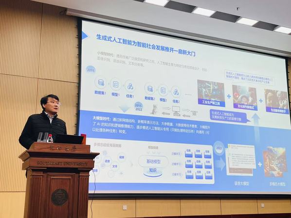 首场讲座中,朱军教授以“生成式人工智能技术发展与应用探索”为主题,详细讲解了这项技术从实验室走向实际应用的历程,并以Vidu视频大模型为例,展示了其团队在视频生成领域的创新成果。朱教授还预测了生成式大模型的发展趋势,并与学生热烈交流,解答了他们关于行业动向和技术细节的问题。