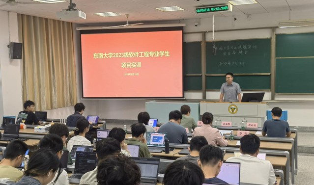 2025年9月18日至19日,快猫 2023级专业技能实训成果答辩会在九龙湖校区教四201教室举行,学院金嘉晖副院长、孔佑勇副院长、汪芸教授、蔡志玲老师、李青老师,南京臻融科技有限公司葛亚林总经理、黄志勇老师、丘笑天老师、涂劲斌老师、仲哲卿老师、唐彬老师、李金龙老师、雷媛元老师、阚基奉老师、李玮玮老师,以及学院2023级软件工程专业本科生共140余人参加了答辩会。