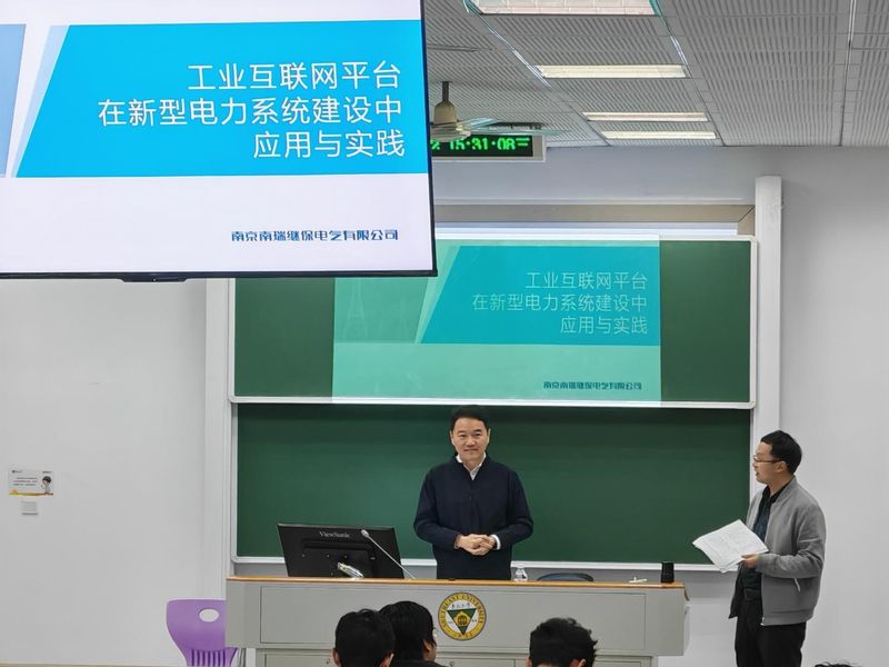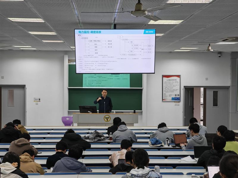 讲座伊始,解凯校友结合南瑞继保在电力保护控制、智能装备及工业过程控制等领域的核心业务,系统梳理了工业互联网的技术内涵与我国电力系统的发展脉络。他重点介绍了团队自主研制的SophiCloud工业互联网平台,详细阐述了该平台在电力行业的应用生态构建,以及其在保障国家电网安全稳定运行、助力“双碳”目标实现方面取得的科研突破与产业化成果。最后,解凯校友结合人工智能技术加速渗透各行业的时代背景,勉励计算机与人工智能方向的学子主动拥抱技术变革,夯实专业基础,锤炼系统思维,努力成长为能够“驾驭AI”的“超级工程师”。他深情引用习近平总书记对青年的寄语与大家共勉:“大家意气风发、朝气蓬勃,要立志高远、脚踏实地”,鼓励同学们将个人理想融入国家能源数字化与新型电力系统建设的大局中。