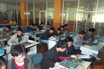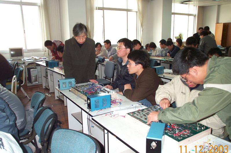 以下图片就是当初朱怡健副教授指导学生做实验的情景,可见到当时还是采用的老式的实验平台。